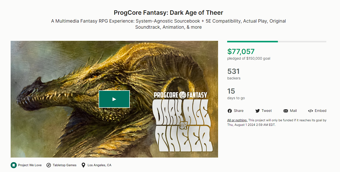 This content is about the ProgCore Fantasy: Dark Age of Theer Kickstarter project. It includes a system-agnostic sourcebook, a 5e…
